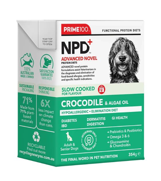 Prime100 NPD Advanced Novel Protein Diets Slow Cooked Wet Dog Food (Crocodile & Algae Oil)